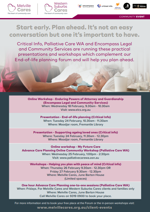 Join us to find out more about the emotional, practical, family and community elements of planning ahead.