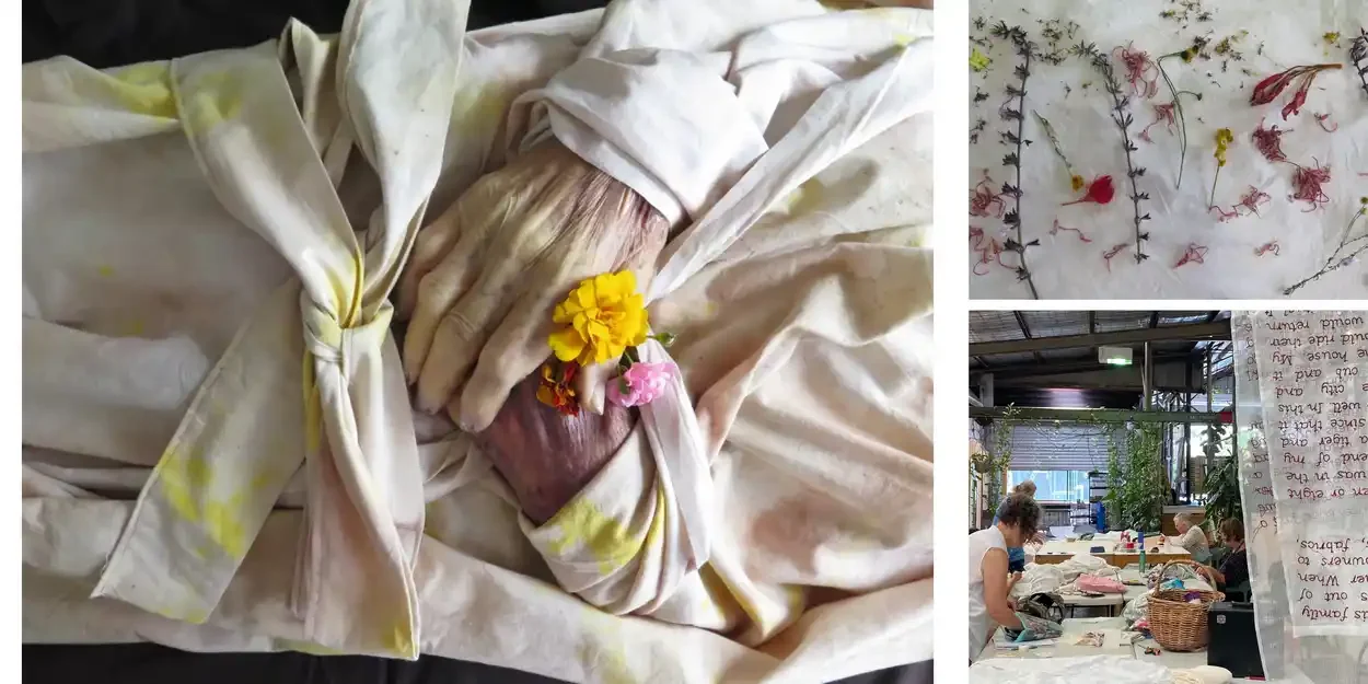 Join artist, Michele Elliot, for a contemplative and practical workshop to explore the tradition of shroud-making. Shrouds have played an important role in caring for the deceased for a very long time. The washing and wrapping of the body is often the last act of care given to a person before they are farewelled.